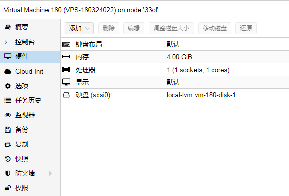 180 是虚拟机的id,在Proxmox所有虚拟机中要唯一,是一个3位数字。